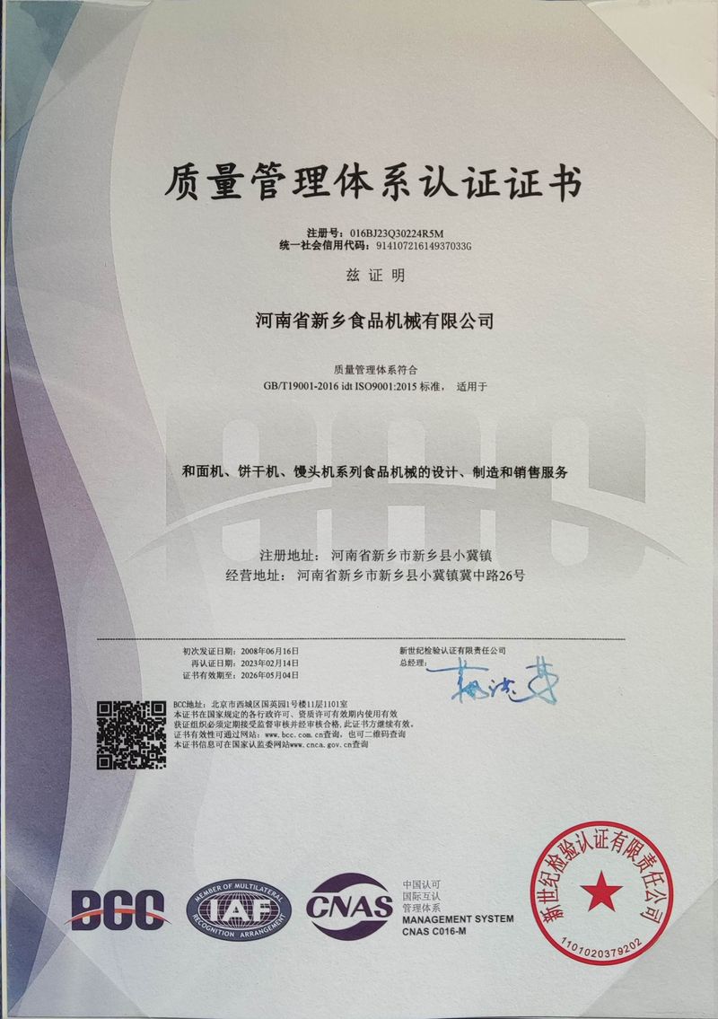 公司堅持以高品質(zhì)、優(yōu)良的服務(wù)為宗旨,以用戶的需求和誠信為核心,為此贏得了廣大客戶的信賴和贊賞,市場占有率大幅度提高。1997年以來連續(xù)被河南省工商銀行評為AAA 級信用企業(yè),新鄉(xiāng)市技術(shù)監(jiān)督局授于計量信得過單位,公司產(chǎn)品連續(xù)經(jīng)國家飲食服務(wù)機械檢測檢驗中心、河南省質(zhì)監(jiān)局、新鄉(xiāng)市質(zhì)檢抽檢檢驗合格。2003年5月順利通過1SO9001國際質(zhì)量體系認(rèn)證。