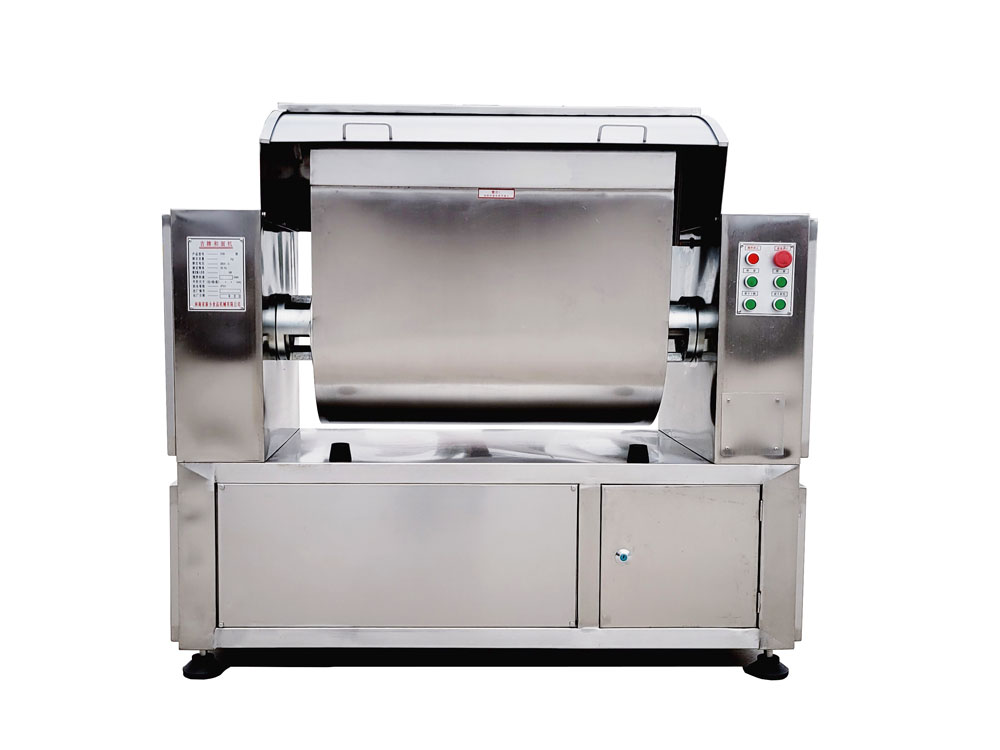 →新型臥式不銹鋼(攪拌)和面機  →型號12.5/25/50/75/100/150/200型  →功能  適合攪拌各種韌性面團。以制作饅頭、餃子、餛飩、包子皮等。更換攪拌器,還可和制作酥性面團,以制作各類糕點、湯圓、餅干以及各種餡料。  同時還適用于化工醫藥等行業中的同類作業。是部隊、機關、學校、酒店、廠礦、食堂可選產品?!  厣 ?、和面機采用花籃式軸套設計,有效防止面團受到污染,進一  步提高食品安全?! ?、面斗可90度下翻,輕松將攪拌好的面團自動排出,節省勞動力?! ?、設備配備安全防護裝置,開蓋自動停機,確保操作人員安全?! ?、整機結構美觀大方,操作方便,噪音小,性能穩定可靠。  →主要技術參數產品型號額定容量(kg)攪拌轉速(rpm)主電機(kw)副電機(kw)外形尺寸(長×寬×高)HWH12.5型12.5261.5640×440×725HWH25型25302.2816×437×1050HWH 50型50263.750.551326×632×1350HWH 75型75263.750.551427×632×1310HWH100型100263.750.551527×632×1310HWH150型150257.51.51664×822×1620HWH200型20021112.21864×822×1620板式刮底攪槳葉花環攪拌器