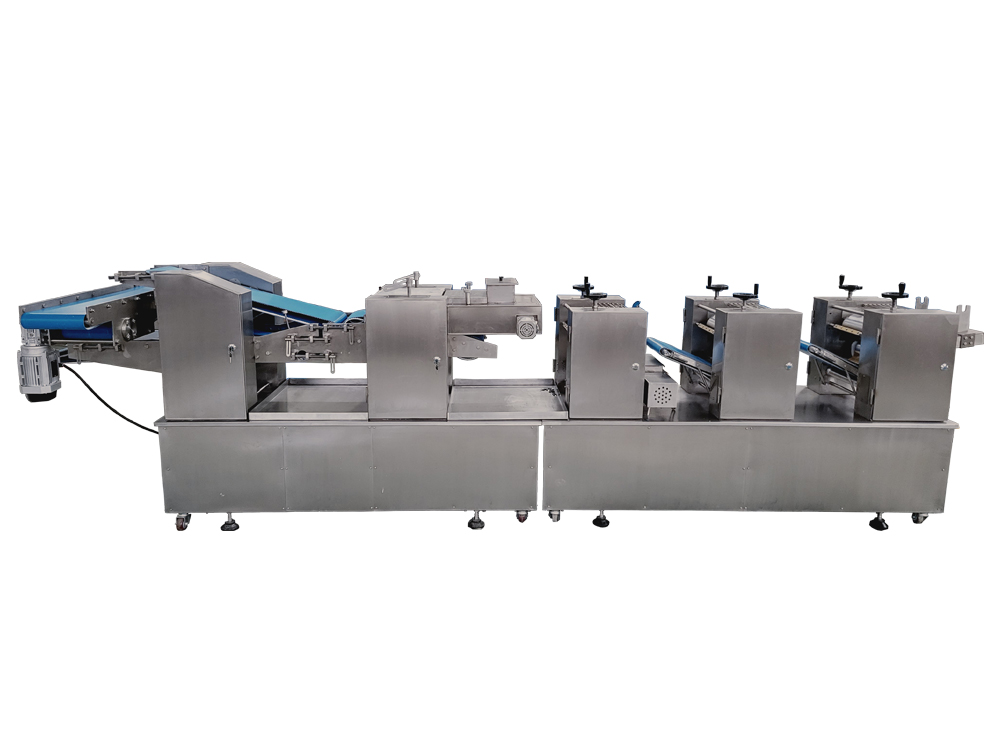 3、設備為變頻控制,每一道壓輥都采用單機驅動,通過測距傳感器,實現自動面帶張緊控制,多輥聯動。快速輕松地制作大量面皮,提高生產效率。