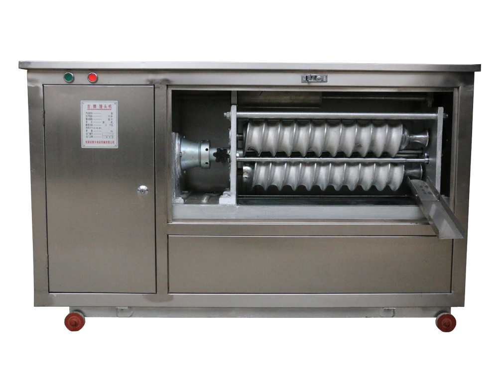 →饅頭生產線  →饅頭生產線配置  和面機、壓面機、饅頭機、搓饃機、蒸箱、蒸車  →功能說明  將醒發好的饅頭坯,用蒸車推進蒸箱內進行蒸制,用戶可根據需要設置蒸制時間,到時自動切斷氣源。  →特色  1、蒸制出的饅頭表面發亮,光澤度好。  2、蒸箱內部溫度均勻。  3、蒸箱配有自動控制裝置,可實現自動進、斷氣,有溫度、     時間數字顯示等。  4、蒸箱配有自動泄壓裝置,消除了不少安全隱患。  5、結構簡潔,外觀美觀,熱效率高,節電,安全可靠,清潔衛生。  →主要技術參數產品型號-轉速(rpm)功率(kW)-外形尺寸(長×寬×高)ZRM350型每次5kg843壓輥調整間隙8-25mm1420×710×1110ZRM500型每次8kg844壓輥調整間隙8-25mm1350×860×1100MG60型饅頭重量為干粉重量60個/分鐘350/56/63/71/83/100(g)1550×500×985QHQZ280型140/280kg/h壓力≤0.025mpd--2320×1570×2300DQJ300型1000-8000個/h60-160g/個2.2-3520×650×1320